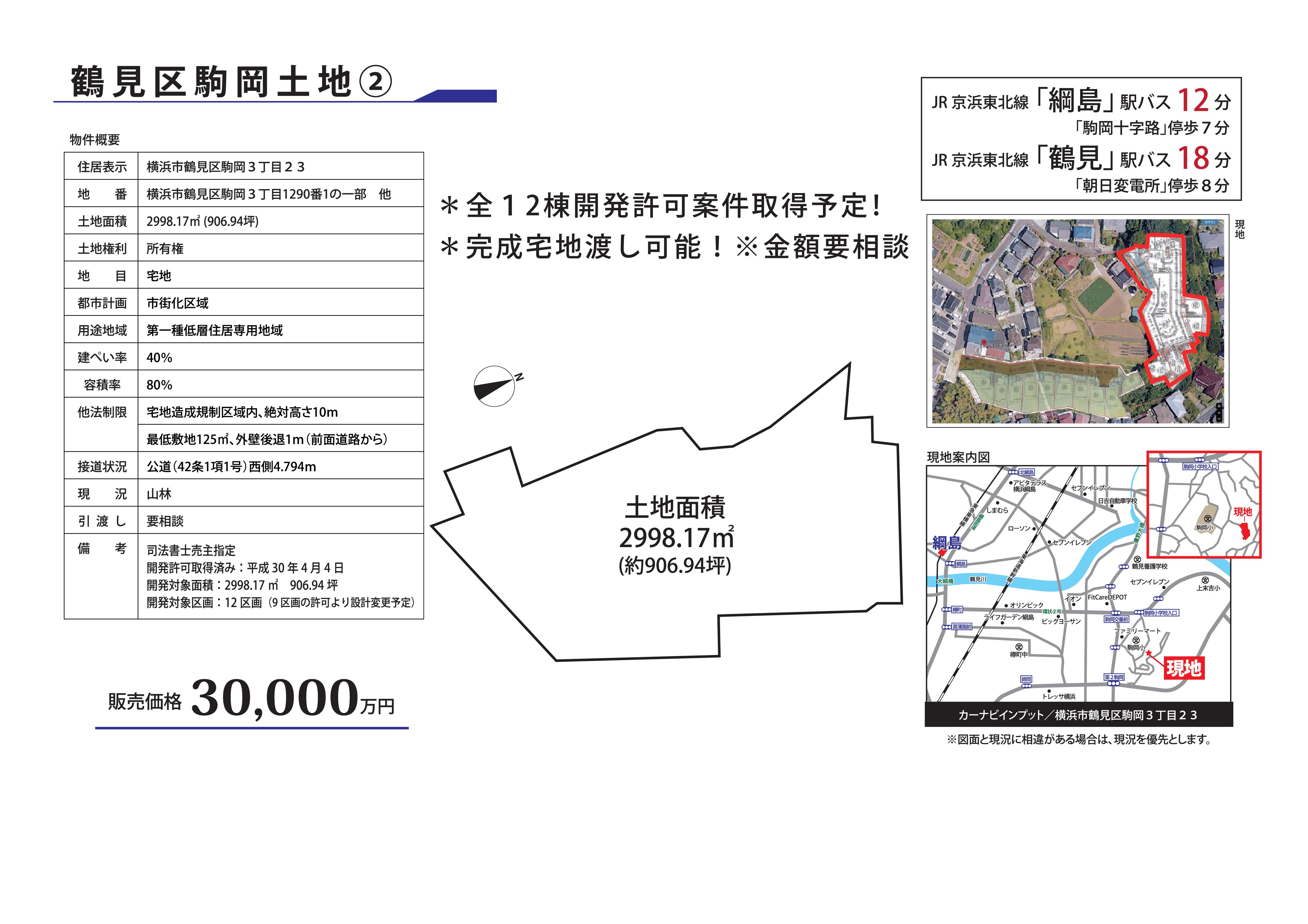 | 30,000万円 (税込み) | 土地 | 2998.17㎡ | 売主 | 40% | 詳細 | 追加 |