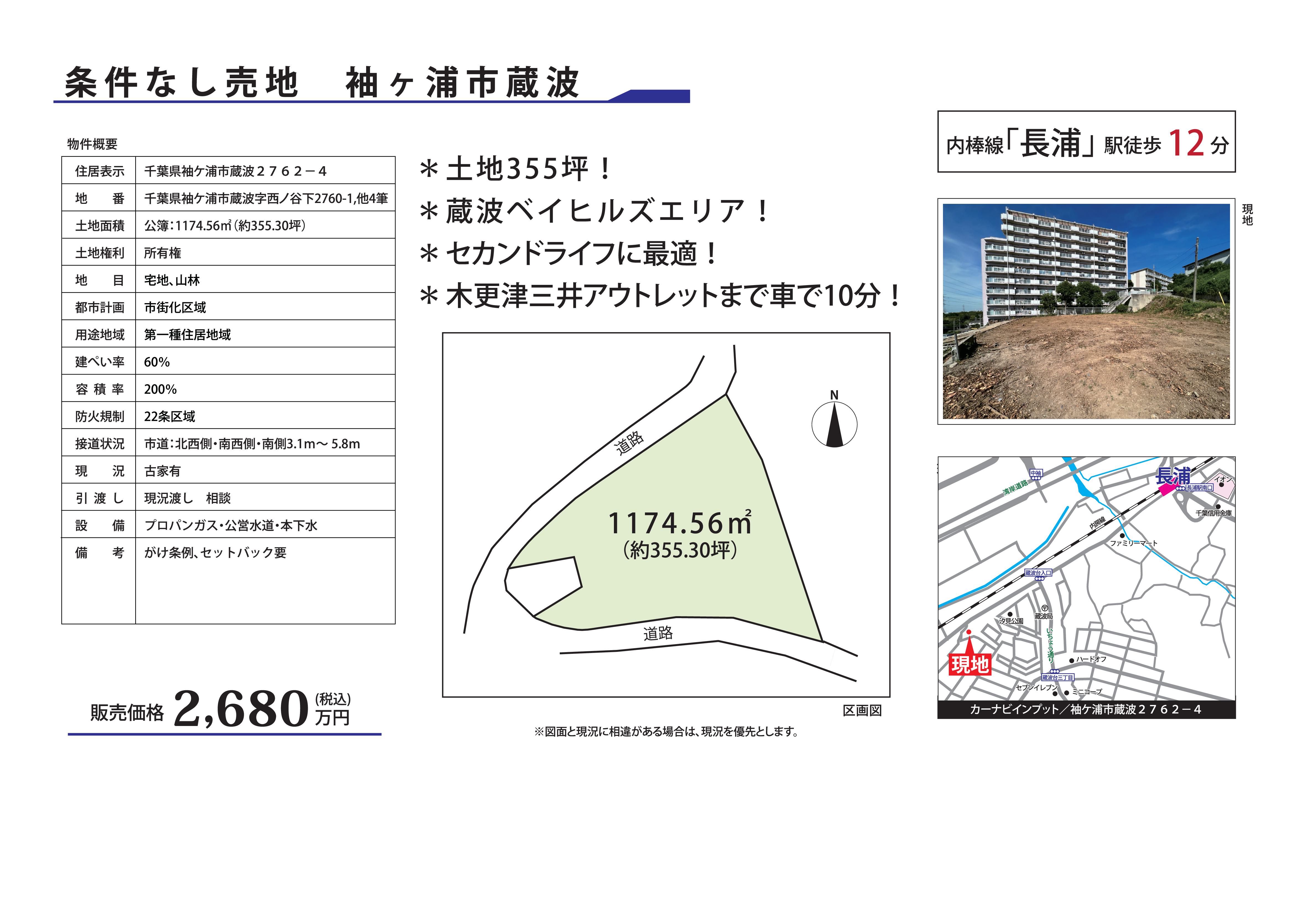 | 2,680万円 (税込み) | 土地 | 1174.56㎡ | 売主 | 60% | 詳細 | 追加 |